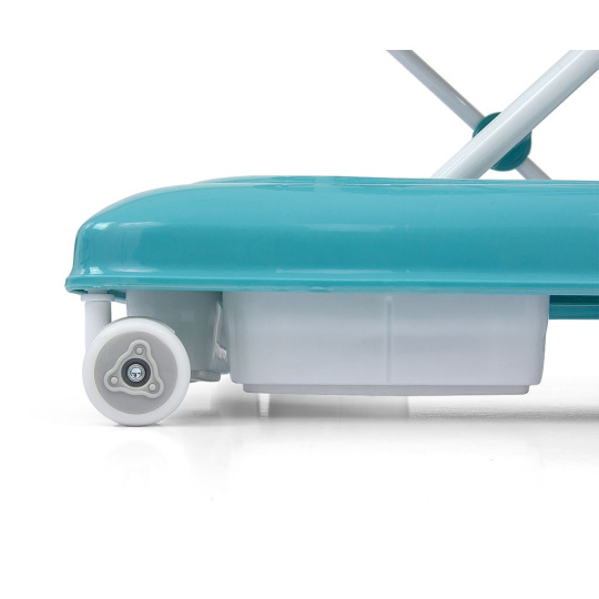 Čtyři kvalitní otočná kolečka, která nepoškrábou povrch, po kterém se pohybují, zajistí volnost pohybu a osm gumových zarážek ochrání dítě před sklouznutím ze schodů nebo jiných překážek.