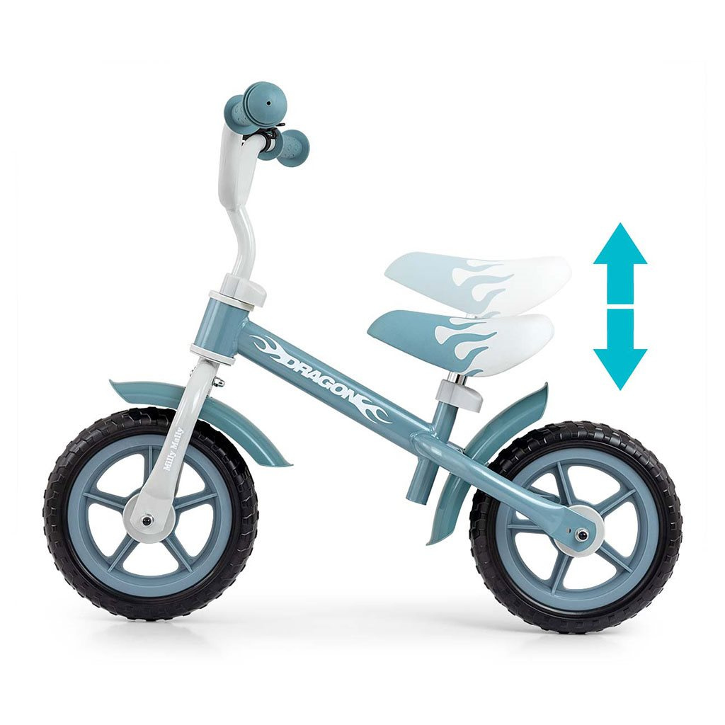 Dětské odrážedlo-kolo Milly Mally Dragon je ideální, když se dítě učí udržet rovnováhu. Je tou nejlepší alternativou pro kolo s bočními kolečky, takže pozdější jízda na klasickém kole bude mnohem jednodušší. Kolo je bez pedálů, díky čemuž se dítě dokáže soustředit hlavně na držení rovnováhy a směr jízdy.