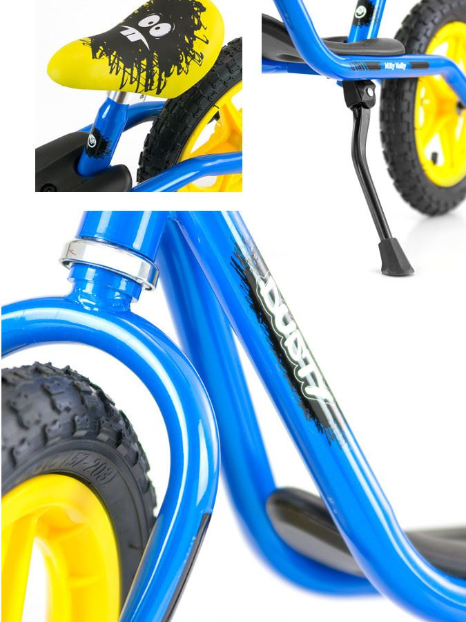 Dětské odrážedlo-kolo Milly Mally Dusty je ideální, když se dítě učí udržet rovnováhu. Je tou nejlepší alternativou pro kolo s bočními kolečky, takže pozdější jízda na klasickém kole bude mnohem jednodušší. Kolo je bez pedálů, díky čemuž se dítě dokáže soustředit hlavně na držení rovnováhy a směr jízdy. Má stojánek a nožičky lze položit na stůpátko.