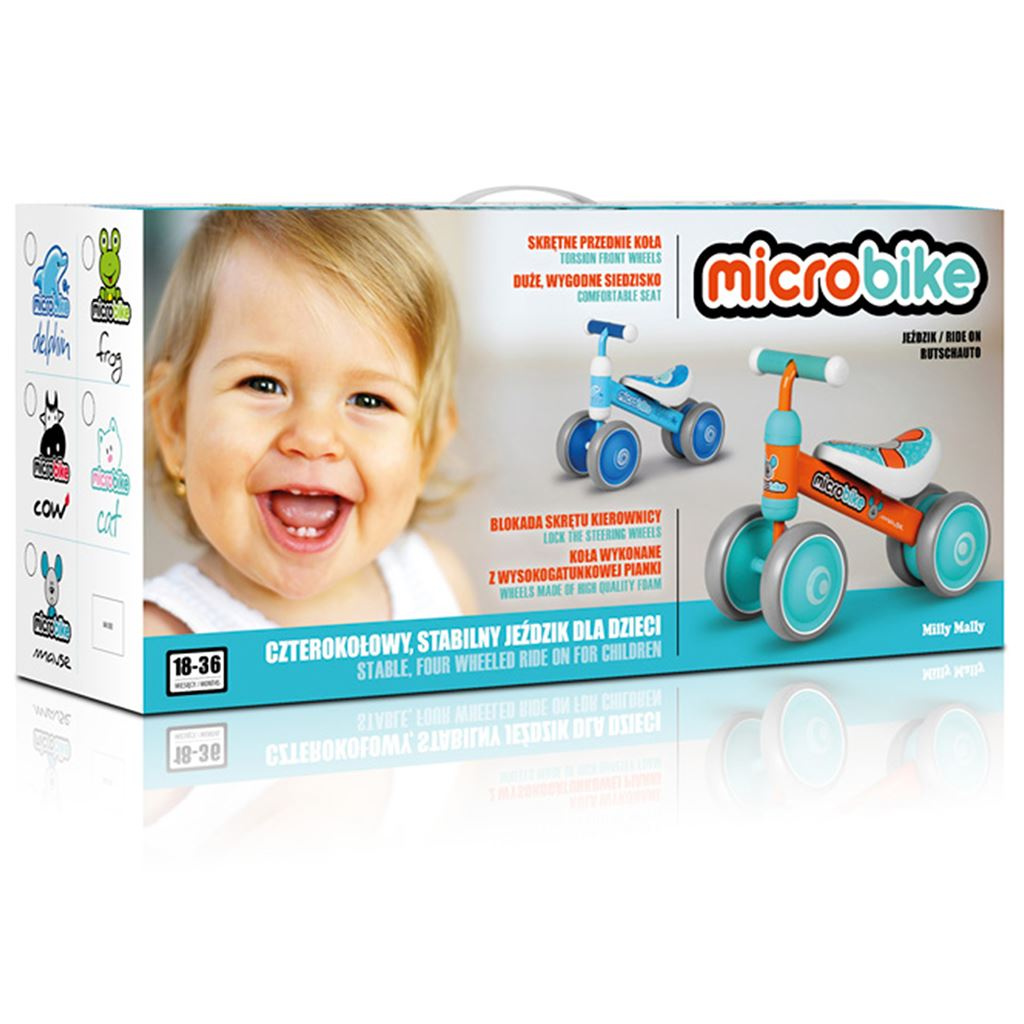 Dětské odrážedlo Milly Mally Micro. Odrážedlo je extrémně lehké, velmi stabilní, malých rozměrů vhodné na doma i ven. Kolečka jsou pěnová, neklouzavá a také jezdí na různých površích. Sedadlo je ozdobeno krásným obrázkem zvířátka. Ideální pro malé dětičky.