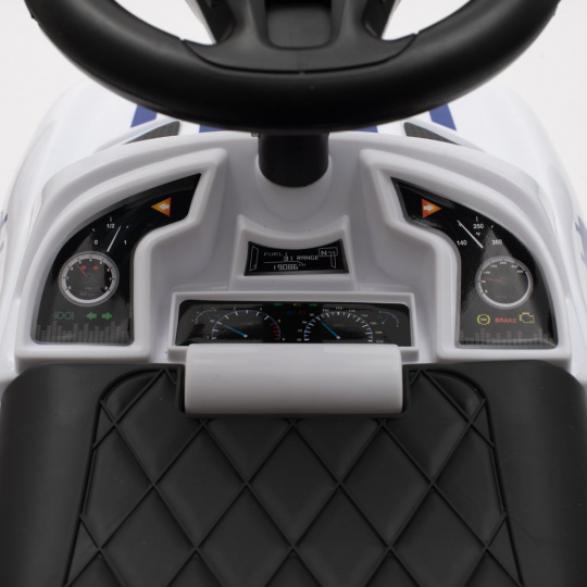 Policejní autíčko jezdítko Baby Mix je opravdovou lahůdkou pro všechny malé strážce zákona. Dokonalé zpracování a detaily jako kola, světla nebo tvar karoserie, přitahují pozornost všech a rychle se stanou oblíbenou hračkou doma i na procházce. Je vyrobeno z kvalitních materiálů a je vybaveno zvukovým panelem. Jezdítko pomáhá rozvíjet motorické schopnosti dítěte a zaručuje spoustu zábavy a radosti. Díky speciální blokádě v zadní části je váš závodník chráněn proti převrácení. Vodící tyč, opěrky na ruce a podnožky lze sundat, a tím dítě využije autíčko jako klasické odrážedlo.