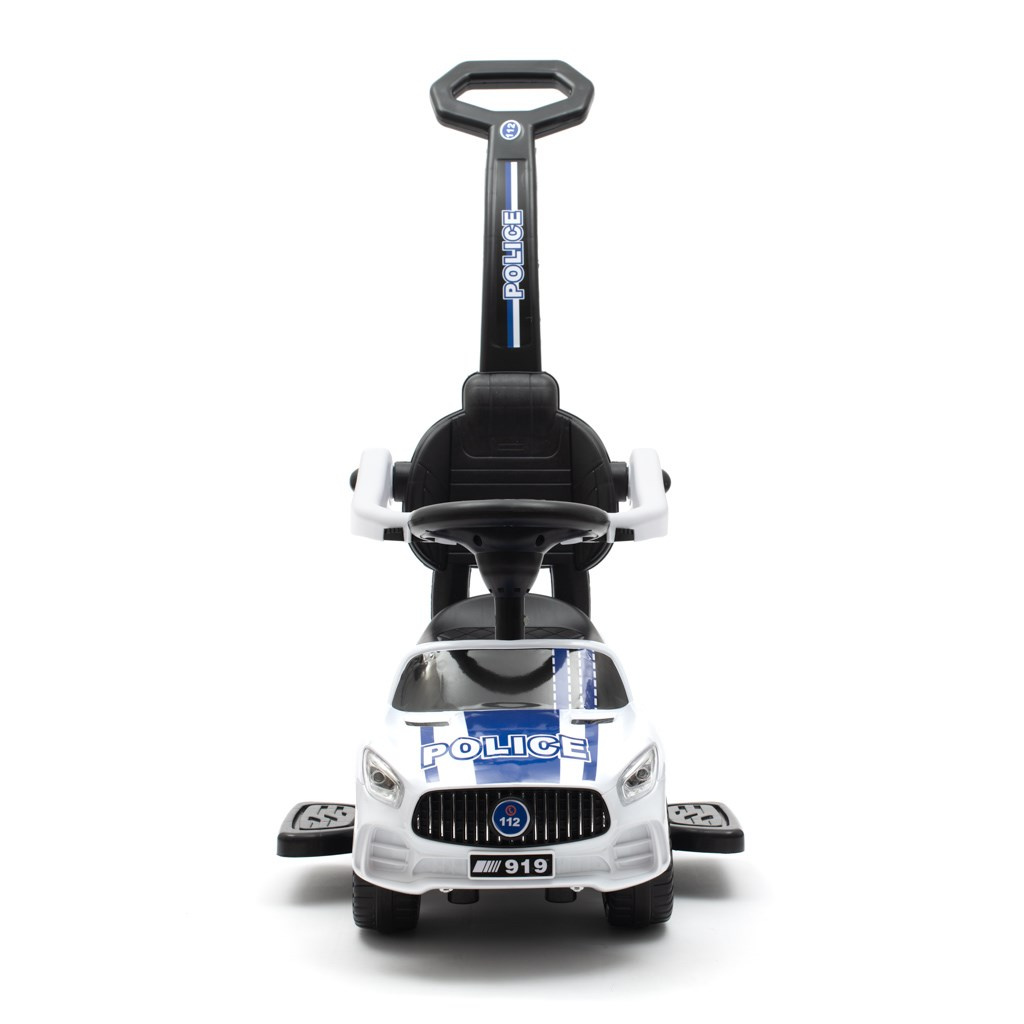 Policejní autíčko jezdítko Baby Mix je opravdovou lahůdkou pro všechny malé strážce zákona. Dokonalé zpracování a detaily jako kola, světla nebo tvar karoserie, přitahují pozornost všech a rychle se stanou oblíbenou hračkou doma i na procházce. Je vyrobeno z kvalitních materiálů a je vybaveno zvukovým panelem. Jezdítko pomáhá rozvíjet motorické schopnosti dítěte a zaručuje spoustu zábavy a radosti. Díky speciální blokádě v zadní části je váš závodník chráněn proti převrácení. Vodící tyč, opěrky na ruce a podnožky lze sundat, a tím dítě využije autíčko jako klasické odrážedlo.