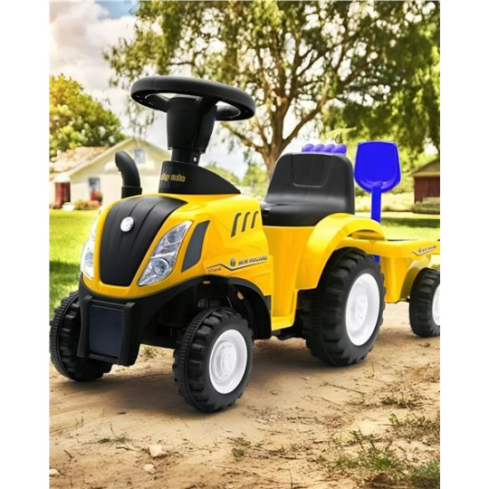 Dětské odrážedlo traktor s vlečkou a nářadím Baby Mix New Holland žlutý
