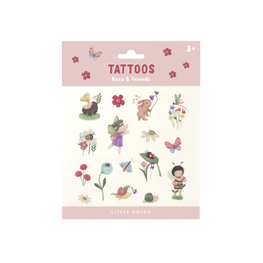 Dočasné dětské tetování s krásnými motivy Rosy, jejích kamarádů z louky a dalších přírodních motivů. Samolepicí tetování se snadno aplikuje s pomocí vlhké houbičky. Arch obsahuje 12 ks tetovaček. Vhodné pro děti od 3 let.