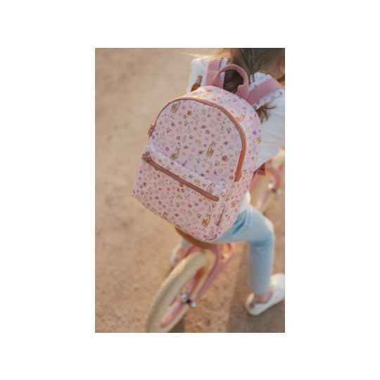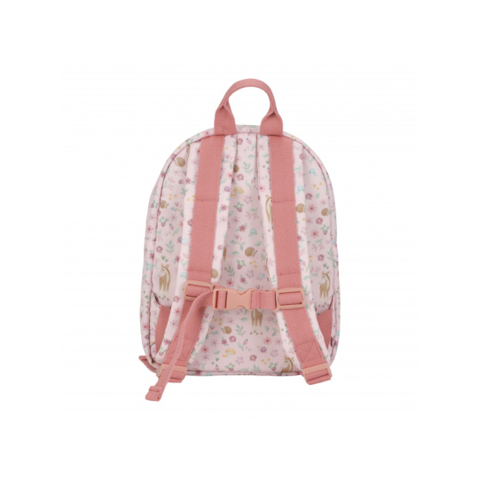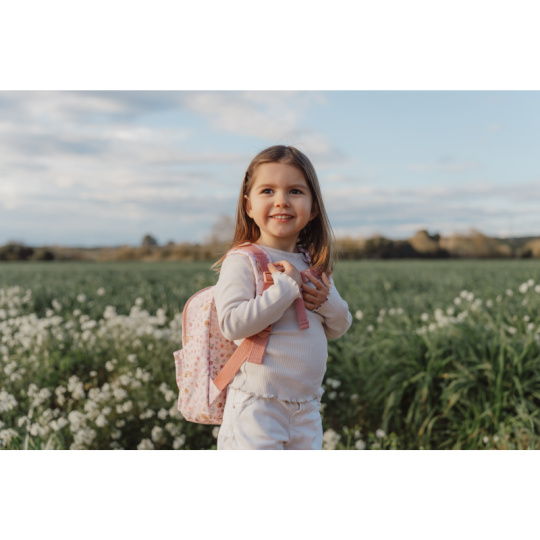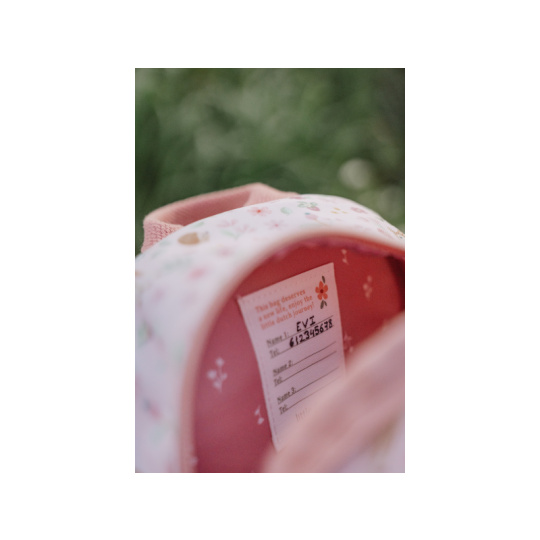 Roztomilý dětský batůžek potištěný obrázky zvířátek a motivy ze života na zahradě je ideálním doplňkem na výlety do přírody i procházky městem. Batůžek má nastavitelné ramenní popruhy a hrudní pás pro příjemné nošení. Držadlo umožňuje přenášení v ruce. Batůžek je vybaven vnější kapsou na zip pro uložení drobností a vnitřní prostor s kapsou, elastickým držákem na pití a jmenovkou. Batůžek je součástí designové kolekce hraček a doplňků pro děti Little Dutch Fairy Garden, inspirované životem na zahradě. Rozměry: 29 x 22,5 x 12 cm