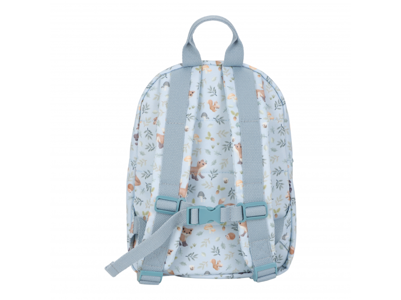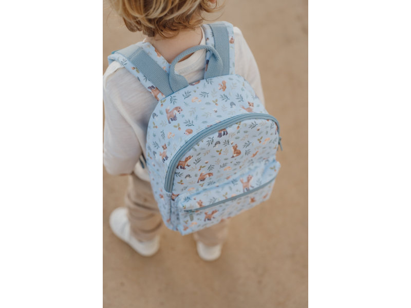 Roztomilý dětský batůžek potištěný obrázky zvířátek a motivy ze života v lese je ideálním doplňkem na výlety do přírody i procházky městem. Batůžek má nastavitelné ramenní popruhy a hrudní pás pro příjemné nošení. Držadlo umožňuje přenášení v ruce. Batůžek je vybaven vnější kapsou na zip pro uložení drobností a vnitřní prostor s kapsou, elastickým držákem na pití a jmenovkou. Batůžek je součástí designové kolekce hraček a doplňků pro děti Little Dutch Forest Friends, inspirované životem v lese. Rozměry: 12 x 22,5 x 29 cm