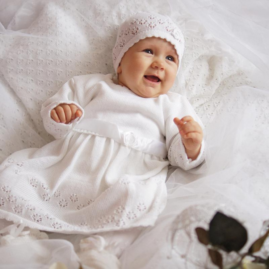 Souprava se skládá ze šatů a čepice, které jsou vyrobené z pleteniny s ozdobným ažurovým vzorem a ozdobnou stuhou. Složení: 65% Akryl, 35% bavlna . Doporučujeme dodržovat prací symboly na etiketě výrobku. Kolekce byla vytvořena s ideou nejnovějších trendů a vytvořená s vášní pro Vás. Upozornění!: Odstraňte tento obal z dosahu dětí, předejdete tím udušení! Adresa dodavatele: EKO Łukasz Kot, ul.Szafranowa 11, 42-224 Częstochowa, POLSKA office@ekokids.eu www.ekokids.eu