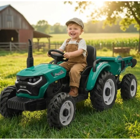 Traktor je vybaven dvěma 30W motory, které společně poskytují spolehlivý tah a plynulý rozjezd. Napájení zajišťuje baterie 12V / 10Ah, díky které si děti užijí dlouhou jízdu bez častého nabíjení. Rychlost přizpůsobená dětem umožňuje bezpečné a komfortní řízení.