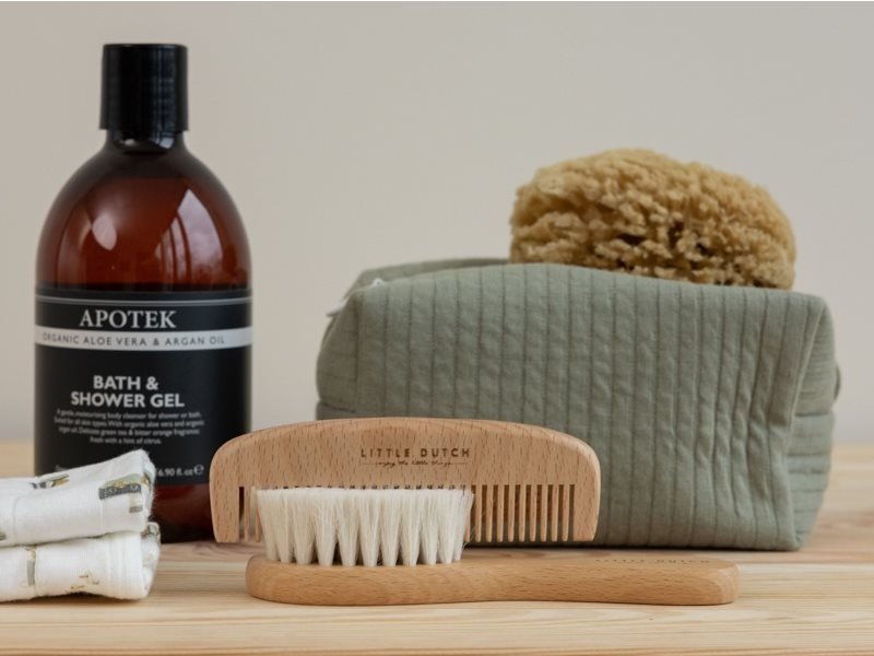 Sada pro každodenní péči o dětské vlásky obsahuje dřevěný kartáč s měkkými štětinami a hřeben se širokými zuby, které jsou šetrné k citlivé pokožce hlavy miminka. Měkké štětiny kartáče jemně masírují pokožku hlavy a podporují prokrvení Hřeben se širokými zuby pomáhá vlasy snadno rozčesat a upravit Ideální pro každodenní rituál po koupeli nebo před spaním Stylový a praktický doplněk pro každou dětskou výbavičku Vhodné pro děti od narození.