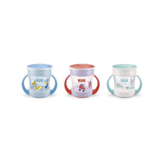 Dětský hrníček MIni Magic NUK 360° s víčkem. Revoluční uzávěr umožňuje pít bez náustku či brčka z každé strany, díky čemuž se dítě učí samo pít jako z normálního hrníčku. Neobsahuje BPA. Charakteristika: