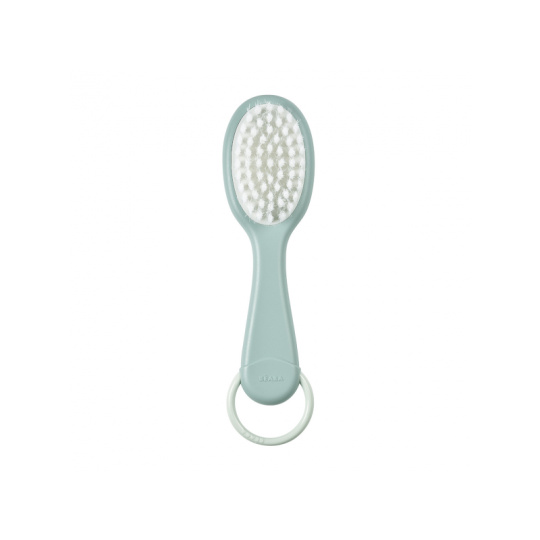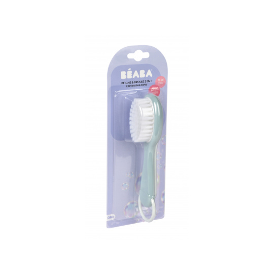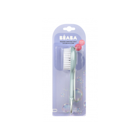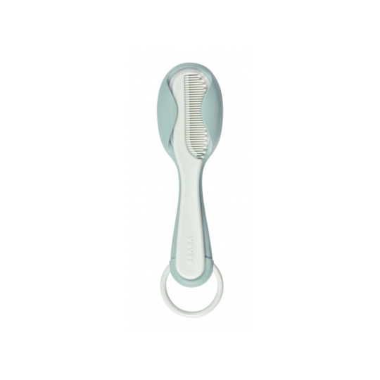 Sada pro péči o vlásky vašeho dítěte od narození obsahuje kartáč s měkkými štětinami a hřebínek se zaoblenými zuby. Ergonomický tvar kartáče i hřebene usnadňuje rodiči uchopení. Hřebínek je uložený v zadní části kartáče, celou sadu můžete díky kroužku snadno zavěsit na háček. Vhodné pro děti od narození.