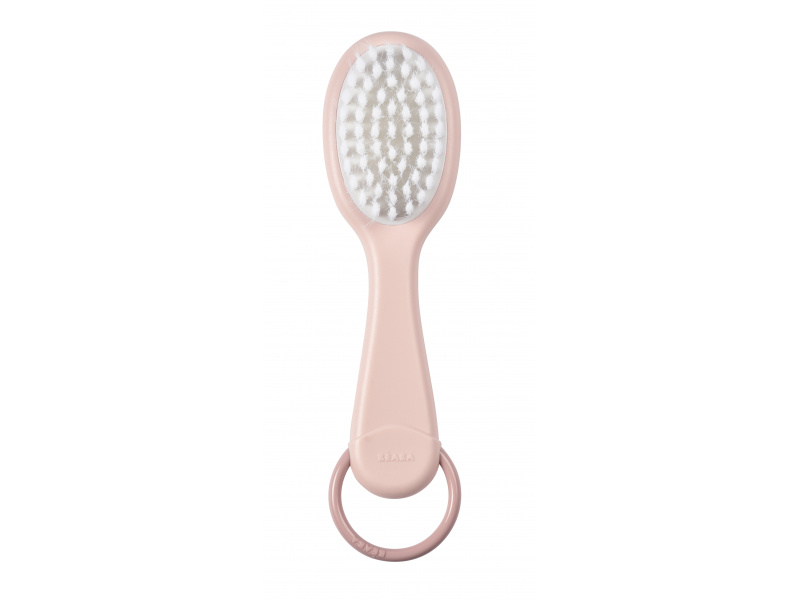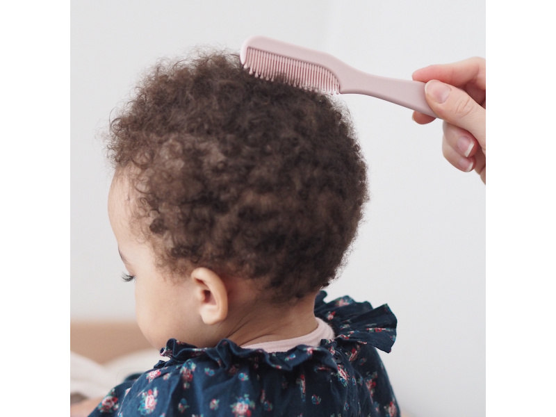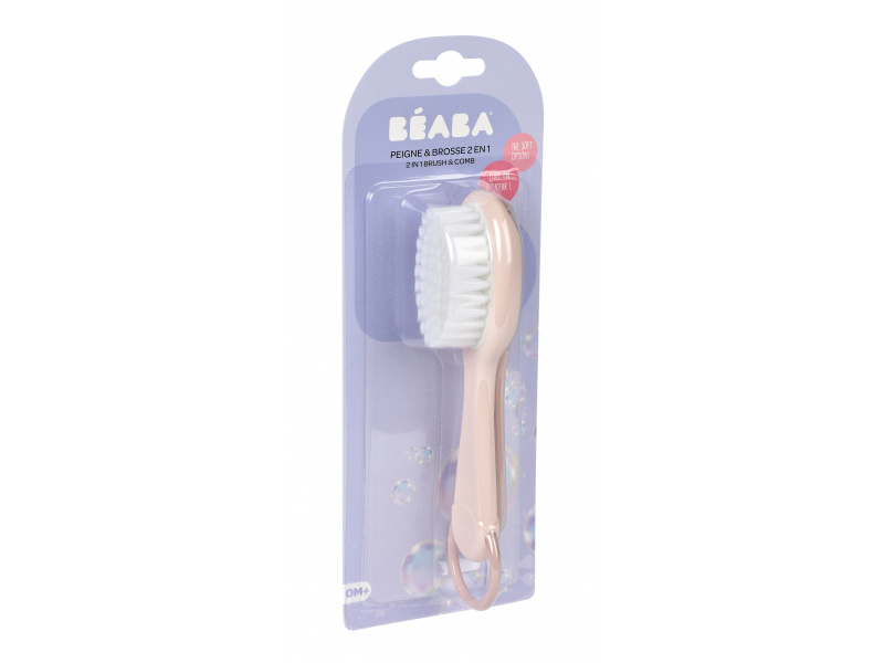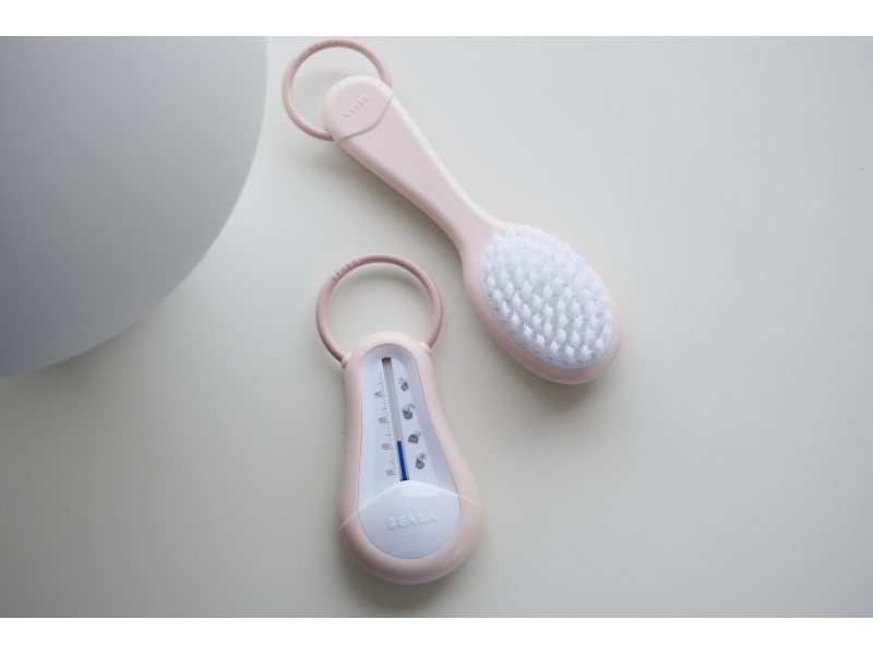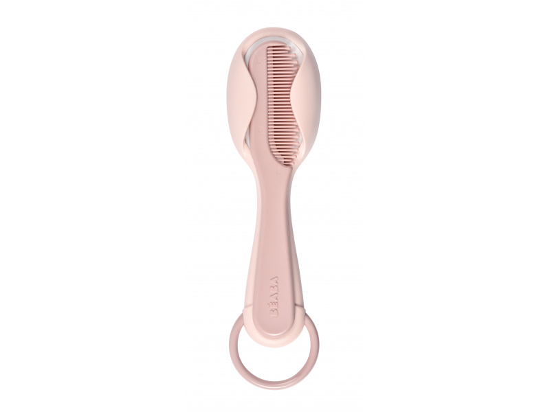 Sada pro péči o vlásky vašeho dítěte od narození obsahuje kartáč s měkkými štětinami a hřebínek se zaoblenými zuby. Ergonomický tvar kartáče i hřebene usnadňuje rodiči uchopení. Hřebínek je uložený v zadní části kartáče, celou sadu můžete díky kroužku snadno zavěsit na háček. Vhodné pro děti od narození