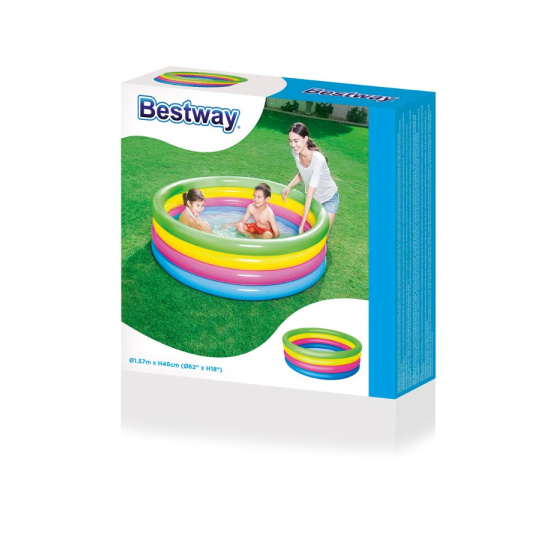 Dětský nafukovací bazén Bestway. Dětský bazén má 4 barvy. Vhodný pro děti od 3 let. Rozměr: cca 157x46 cm. Obsah: 522l. Složení: PVC.