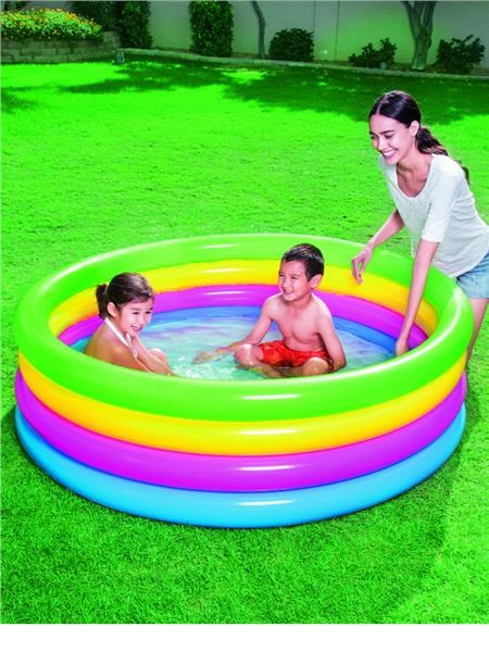 Dětský nafukovací bazén Bestway. Dětský bazén má 4 barvy. Vhodný pro děti od 3 let. Rozměr: cca 157x46 cm. Obsah: 522l. Složení: PVC.