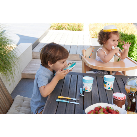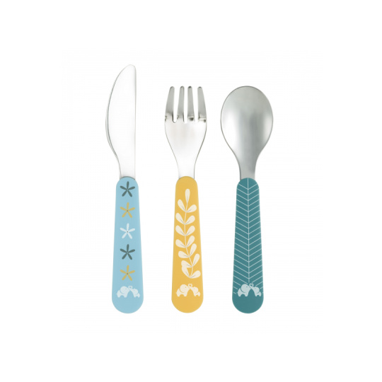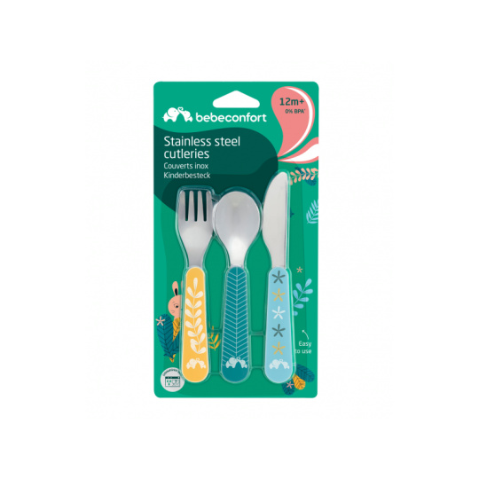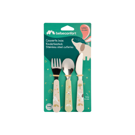 3-dílná sada příboru z kvalitní nerezové oceli s plastovou rukojetí pro snadné držení s krásným potiskem. Délka lžičky: vidlička / lžíce 14 cm, nůž 15,5 cm Možno mýt v myčce. Vhodné pro děti od 12 měsíců.