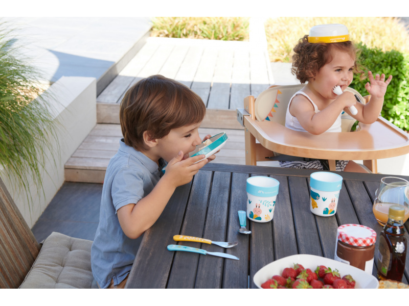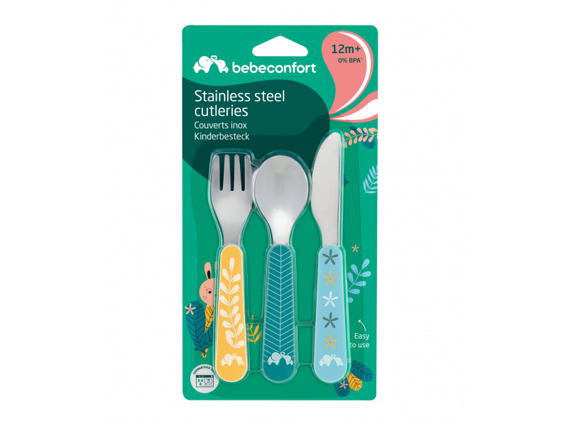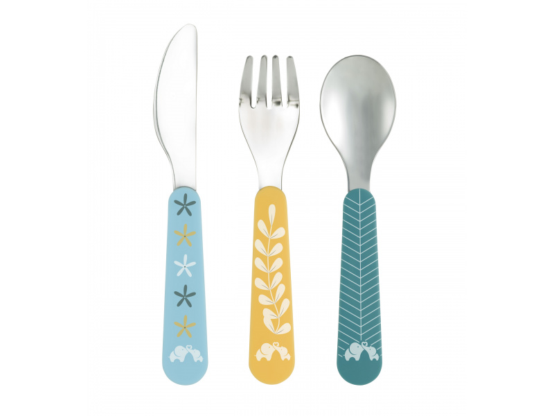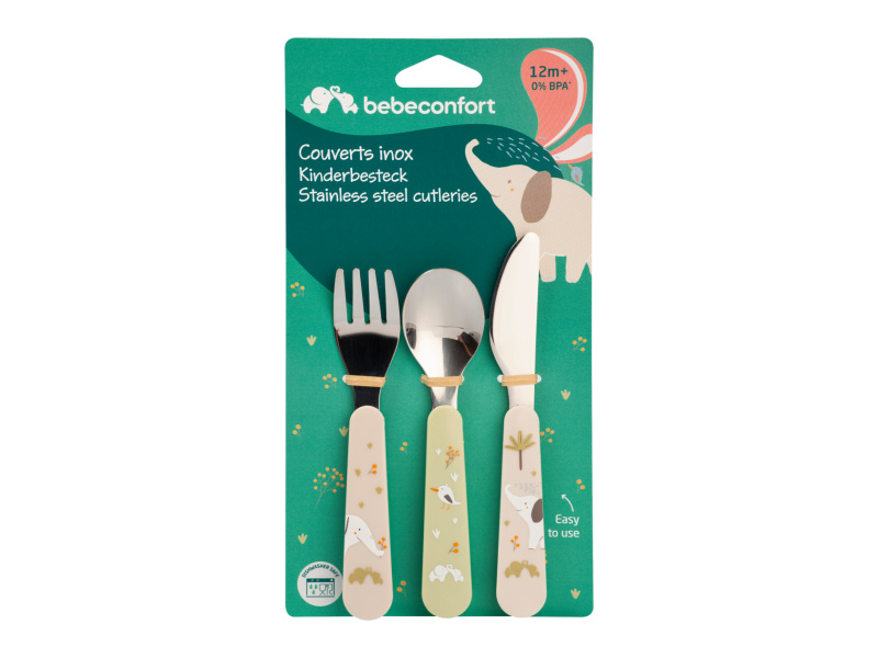 3-dílná sada příboru z kvalitní nerezové oceli s plastovou rukojetí pro snadné držení s krásným potiskem. Délka lžičky: vidlička / lžíce 14 cm, nůž 15,5 cm Možno mýt v myčce. Vhodné pro děti od 12 měsíců.