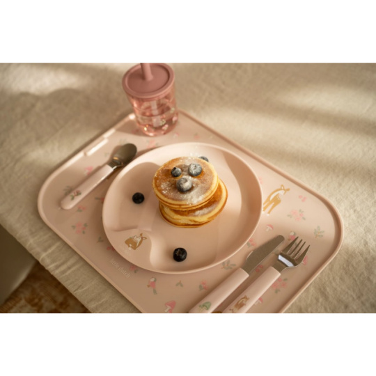 3-dílná sada příboru z kvalitní nerezové oceli s plastovou rukojetí pro snadné držení s krásným potiskem. Nůž má bezpečný zoubkovaný okraj. Příbor je součástí designové kolekce hraček a doplňků pro děti Little Dutch Fairy Garden, inspirované životem na zahradě. Rozměry: vidlička / lžíce 14,5 cm, nůž 16,5 cm Materiál: ABS, nerezová ocel. Možno mýt v myčce. Vhodné pro děti od 12 měsíců.