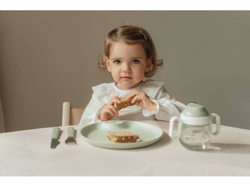 3-dílná sada příboru z kvalitní nerezové oceli s plastovou rukojetí pro snadné držení s krásným potiskem. Nůž má bezpečný zoubkovaný okraj. Příbor je součástí designové kolekce hraček a doplňků pro děti Little Dutch Farma. Rozměry: vidlička / lžíce 14,5 cm, nůž 16,5 cm Materiál: ABS, nerezová ocel. Možno mýt v myčce. Vhodné pro děti od 12 měsíců.