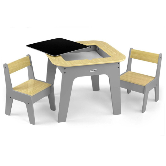Dětská sada nábytku Olaf Blocks - stůl a dvě židličky je multifunkční komplet navržený tak, aby zajistil dětem pohodlí a prostor pro kreativní hraní a učení. Stůl s dvěma židličkami má decentní barevné provedení, které mu dodává moderní a estetický vzhled, hodící se do každého interiéru.