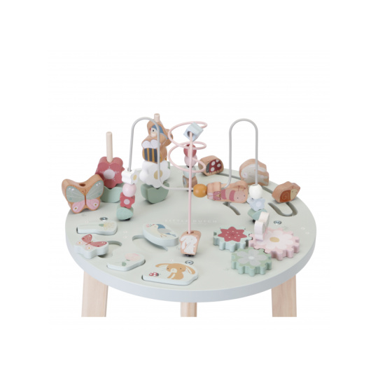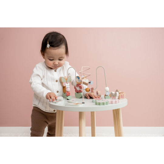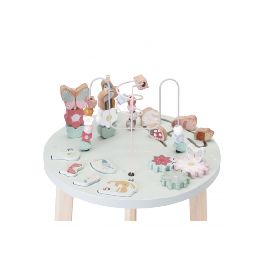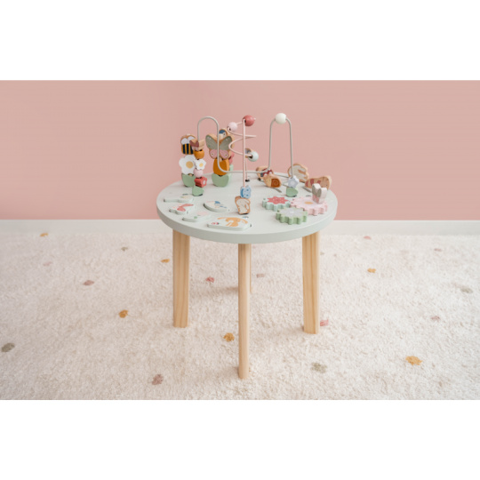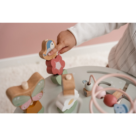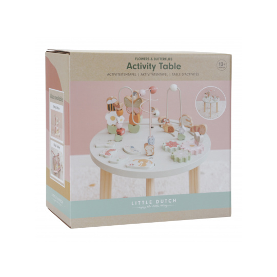 Dřevěný multifunkční stolek v krásném a vysoce kvalitním provedení nabízí vašemu dítěti množství různorodých aktivit, které dítě zabaví a zároveň pomáhají rozvíjet jeho jemnou motoriku i jednotlivé smysly. Lákat dítě ke zkoumání budou pohyblivé, posuvné i odnímatelné dřevěné díly v podobě květin, motýlů a dalších obyvatel rozkvetlé louky. Díky stabilnímu dřevěnému provedení je stolek vhodný i pro děti, které hledají oporu při prvních krůčcích. Stolek je součástí designové kolekce hraček a doplňků Little Dutch Květiny a motýli. Rozměry: 39 x 39 x 54 cm Vhodné pro děti od 12 měsíců.