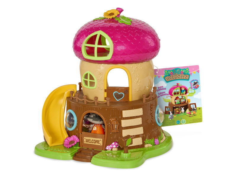 3-patrový domeček ve tvaru žaludu Acorn Treehouse je vybaven nábytkem i zábavnými aktivitami včetně skluzavky pro postavičky zvířátek Li'l Woodzeez. Když se setmí, domeček můžete rozsvítit funkčním LED osvětlením. Součástí balení je postavička mývala ze série Bobbleez. Další postavičky zvířátek Li'l Woodzeez se prodávají samostatně. 19-dílná sada obsahuje domeček, postavičku mývala Bobleez, postel, policový díl, 2 židle, stolek, konvici, 1 misku, 2 talíře, misku s houbami, misku se žaludy, misku s květinami, 3 láhve a 2 šálky. Samostatně prodávané postavičky zvířátek Li'l Woodzeez jsou vyrobené z měkkého příjemného materiálu a mají pohyblivé ruce, nohy i hlavy pro zábavnou předstíranou hru. Součástí samostatně prodávané nabídky doplňků Li'l Woodzeez jsou domečky, obchody i dopravní prostředky. Všechny postavičky a doplňky Li'l Woodzeez jsou navzájem kompatabilní a umožní vám vytvořit originální městečko pro nekonečnou hru rozvíjející fantazii a kreativitu vašeho dítěte. Baterie 3xAAA 1,5V nejsou součástí balení. Rozměry: 27 x 26 x 29 cm Vhodné pro děti od 3 let.
