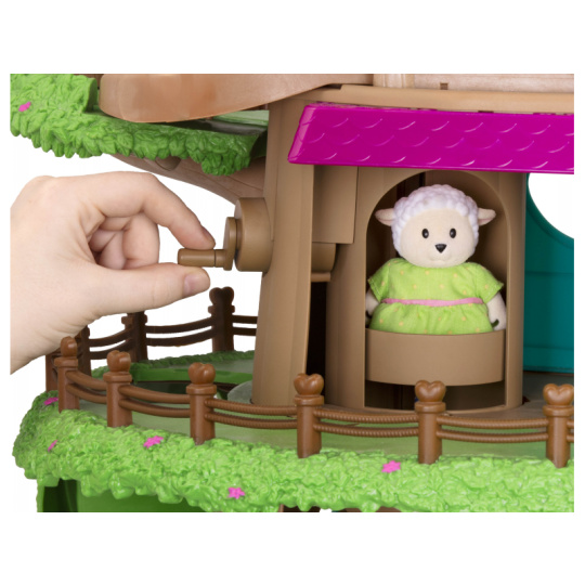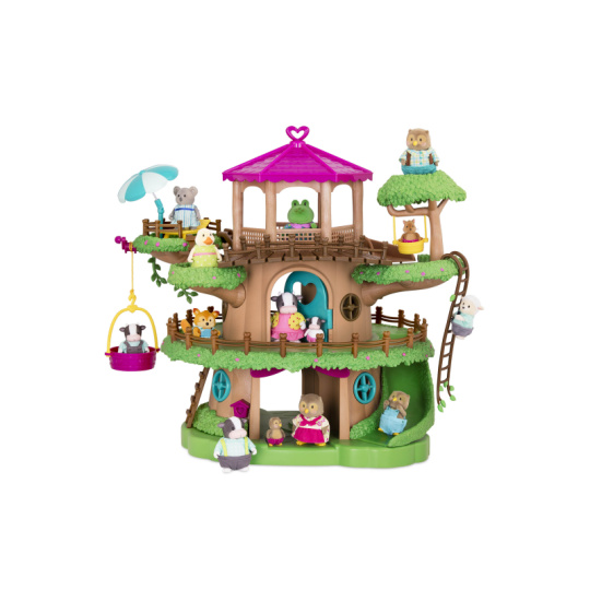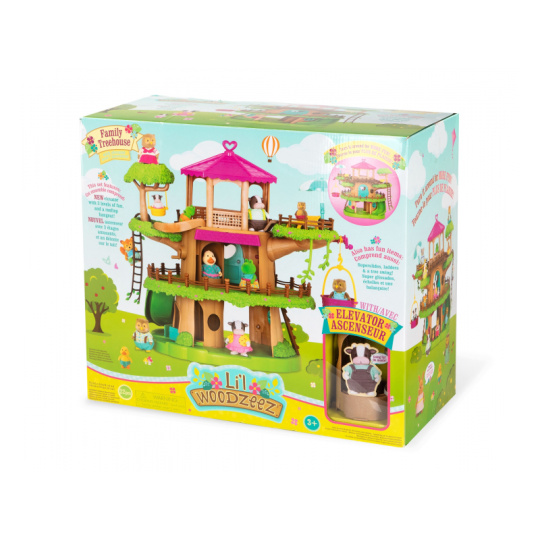 Domeček Family Treehouse je skvělým místem pro setkávání rodin z městečka Honeysuckle Hollow. 3-patrový domeček láká ke zkoumání různorodých zákoutí a nabízí množství zábavných aktivit pro zvířátka Li'l Woodzeez - výtah, kterým se zvířátka vyvezou do nejvyššího patra, houpačky, skluzavku, žebřík apod. Samostatně prodávané postavičky zvířátek Li'l Woodzeez jsou vyrobené z měkkého příjemného materiálu a mají pohyblivé ruce, nohy i hlavy pro zábavnou předstíranou hru. Součástí samostatně prodávané nabídky doplňků Li'l Woodzeez jsou domečky, obchody i dopravní prostředky. Všechny postavičky a doplňky Li'l Woodzeez jsou navzájem kompatabilní a umožní vám vytvořit originální městečko pro nekonečnou hru rozvíjející fantazii a kreativitu vašeho dítěte. Postavičky zvířátek Li'l Woodzeez nejsou součástí balení. Rozměry: 56 x 38 x 48 cm Vhodné pro děti od 3 let.
