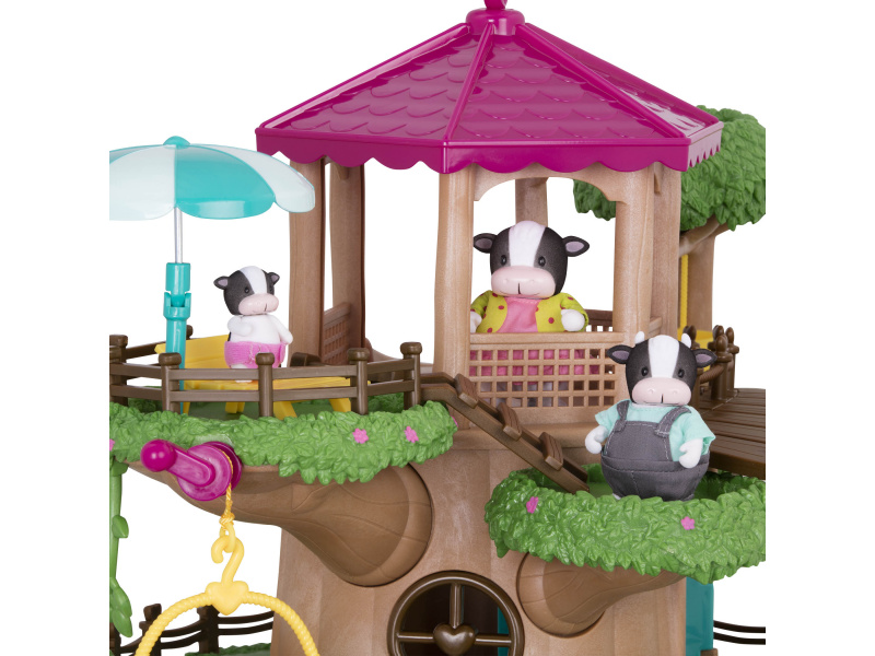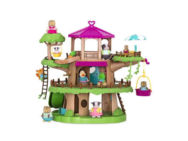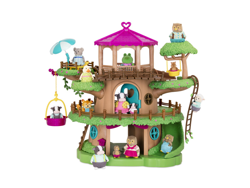 Domeček Family Treehouse je skvělým místem pro setkávání rodin z městečka Honeysuckle Hollow. 3-patrový domeček láká ke zkoumání různorodých zákoutí a nabízí množství zábavných aktivit pro zvířátka Li'l Woodzeez - výtah, kterým se zvířátka vyvezou do nejvyššího patra, houpačky, skluzavku, žebřík apod. Samostatně prodávané postavičky zvířátek Li'l Woodzeez jsou vyrobené z měkkého příjemného materiálu a mají pohyblivé ruce, nohy i hlavy pro zábavnou předstíranou hru. Součástí samostatně prodávané nabídky doplňků Li'l Woodzeez jsou domečky, obchody i dopravní prostředky. Všechny postavičky a doplňky Li'l Woodzeez jsou navzájem kompatabilní a umožní vám vytvořit originální městečko pro nekonečnou hru rozvíjející fantazii a kreativitu vašeho dítěte. Postavičky zvířátek Li'l Woodzeez nejsou součástí balení. Rozměry: 56 x 38 x 48 cm Vhodné pro děti od 3 let.