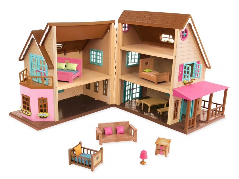 Otevírací 3-patrový domeček Hillside Cottage poskytuje nádherné bydlení postavičkám zvířátek Li'l Woodzeez. Uvnitř najdete nábytek včetně postelí pro celou rodinu, stolu se židlemi, pohovky atd. Ložnice v horním patře má vstup balkon, v přízemí je krásná veranda pro relaxaci venku a houpačka pro zábavu dětí. A když se večer setmí, můžete zapnout vnitřní i venkovní osvětlení! 20-dílná sada obsahuje domeček s funkčními světly, pohovku, 2 polštáře, stůl a 2 lavice, postel s matrací a 2 polštáři, dětskou postýlku s matrací a polštářem, postýlku s matrací a polštářem, noční stolek, lampu a houpačku. Samostatně prodávané postavičky zvířátek Li'l Woodzeez jsou vyrobené z měkkého příjemného materiálu a mají pohyblivé ruce, nohy i hlavy pro zábavnou předstíranou hru. Součástí samostatně prodávané nabídky doplňků Li'l Woodzeez jsou domečky, obchody i dopravní prostředky. Všechny postavičky a doplňky Li'l Woodzeez jsou navzájem kompatabilní a umožní vám vytvořit originální městečko pro nekonečnou hru rozvíjející fantazii a kreativitu vašeho dítěte. Postavičky zvířátek Li'l Woodzeez nejsou součástí balení. Rozměry: 46 x 38 x 40 cm Vhodné pro děti od 3 let.