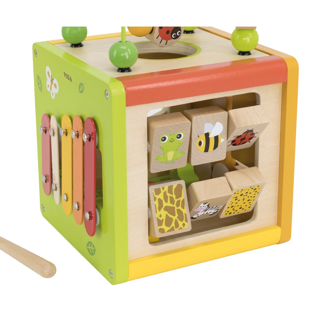 Dřevěná edukační kostka 5v1 s bludištěm a xylofonem Viga