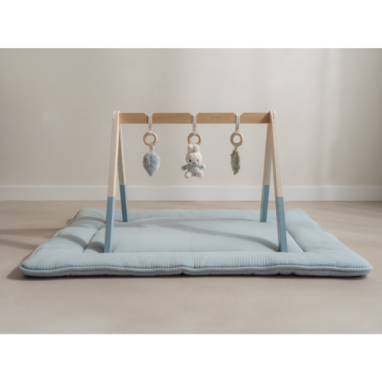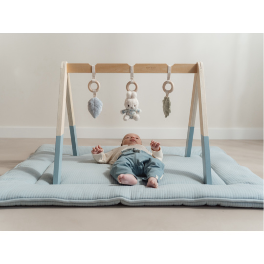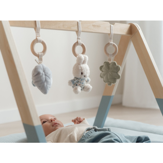 Stylová dřevěná hrazdička se třemi zavěšenými plyšovými hračkami v podobě králíčka Miffy a lístků různých tvarů poskytne vašemu miminku spoustu zábavy při hraní na dece. Jednotlivé hračky lákají dítě ke zkoumání a dotýkání, při pohybu chrastí a šustí. Odnímatelné hračky je možné používat i samostatně. Hrazda je je součástí kolekce hraček Little Dutch Miffy, jejichž ústřední postavou je roztomilá králičí holčička Miffy, známá z knížek pro děti holandského spisovatele Dicka Bruny. Vyrobeno z vysoce kvalitního odolného dřeva certifikovaného FSC. Rozměry: 48 x 60 x 54 cm Vhodné pro děti od narození.
