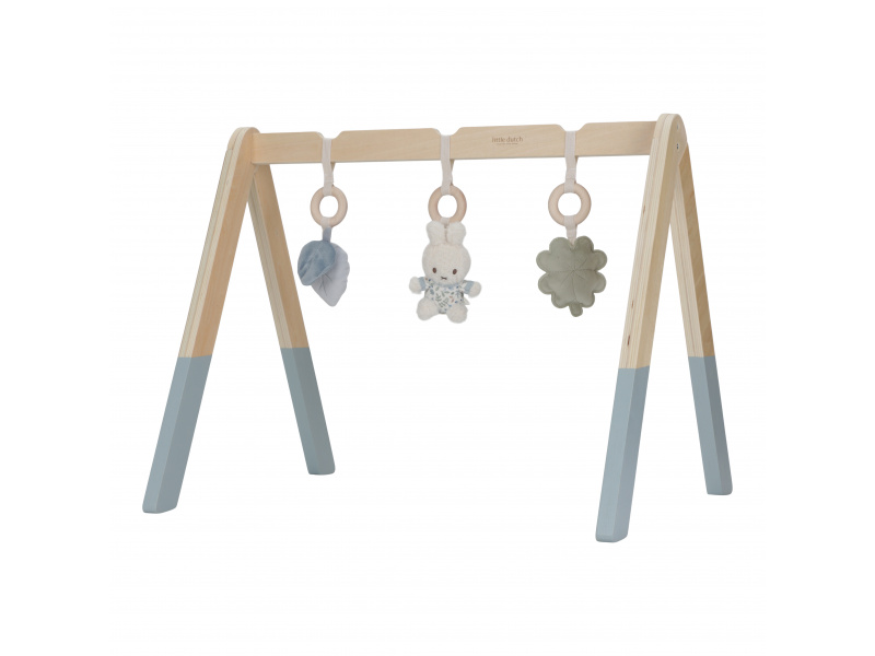Stylová dřevěná hrazdička se třemi zavěšenými plyšovými hračkami v podobě králíčka Miffy a lístků různých tvarů poskytne vašemu miminku spoustu zábavy při hraní na dece. Jednotlivé hračky lákají dítě ke zkoumání a dotýkání, při pohybu chrastí a šustí. Odnímatelné hračky je možné používat i samostatně. Hrazda je je součástí kolekce hraček Little Dutch Miffy, jejichž ústřední postavou je roztomilá králičí holčička Miffy, známá z knížek pro děti holandského spisovatele Dicka Bruny. Vyrobeno z vysoce kvalitního odolného dřeva certifikovaného FSC. Rozměry: 48 x 60 x 54 cm Vhodné pro děti od narození.