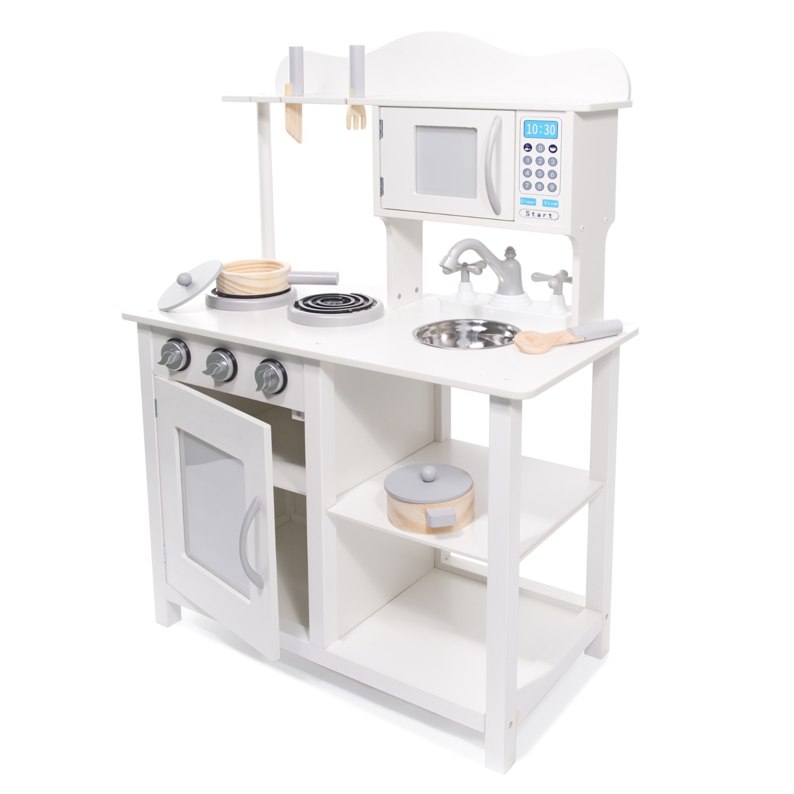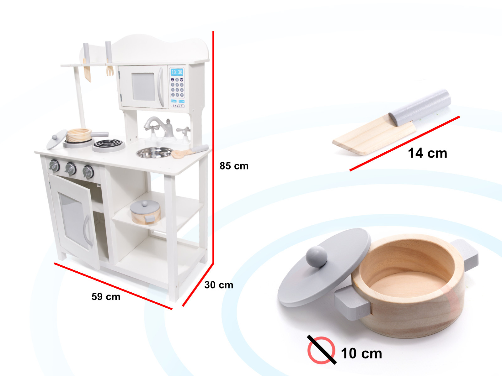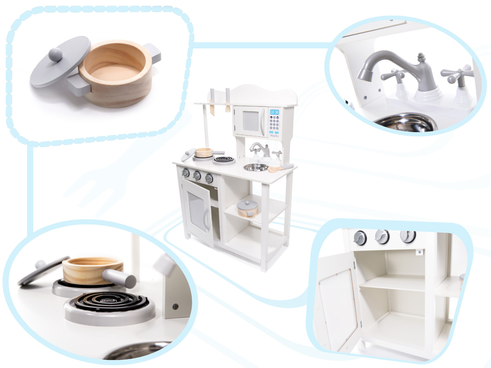 Velká elegantní kuchyně se bude hodit do každého dětského pokoje. Univerzální bílá barva odkazuje na tradiční kuchyňky, které vašemu dítěti umožní ještě více zažít hru.