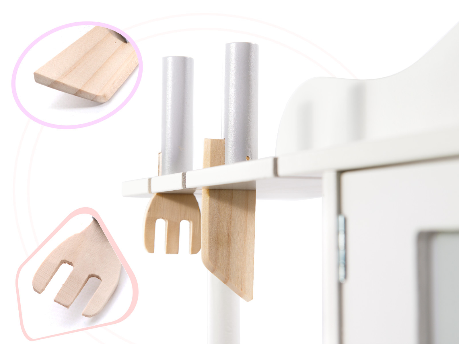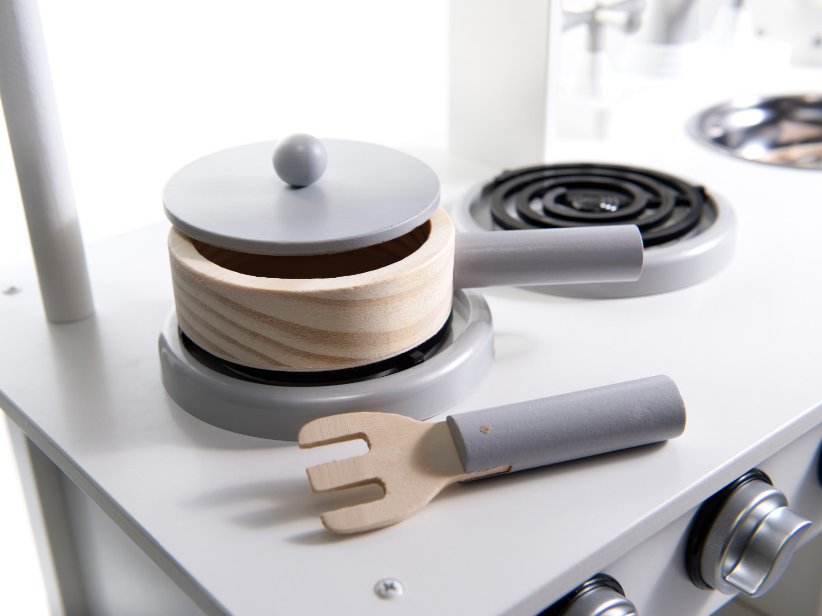 Dřevěná kuchyňka vám umožní vysvětlit vašemu dítěti nebezpečí hořáků bez rizika popálení.