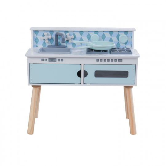 Dětská kuchyňka Play & Put Away z přírodního materiálu pro všechny malé kuchtíky od výrobce Kidkraft. Kuchyň obsahuje varné plotýnky se dvěma ovládacími knoflíky, které při otáčení cvakají. Obě dvířka herní soustavy jsou otevíratelná. Nožky kuchyňky je možné oddělat a herní sestavu tak snížit.