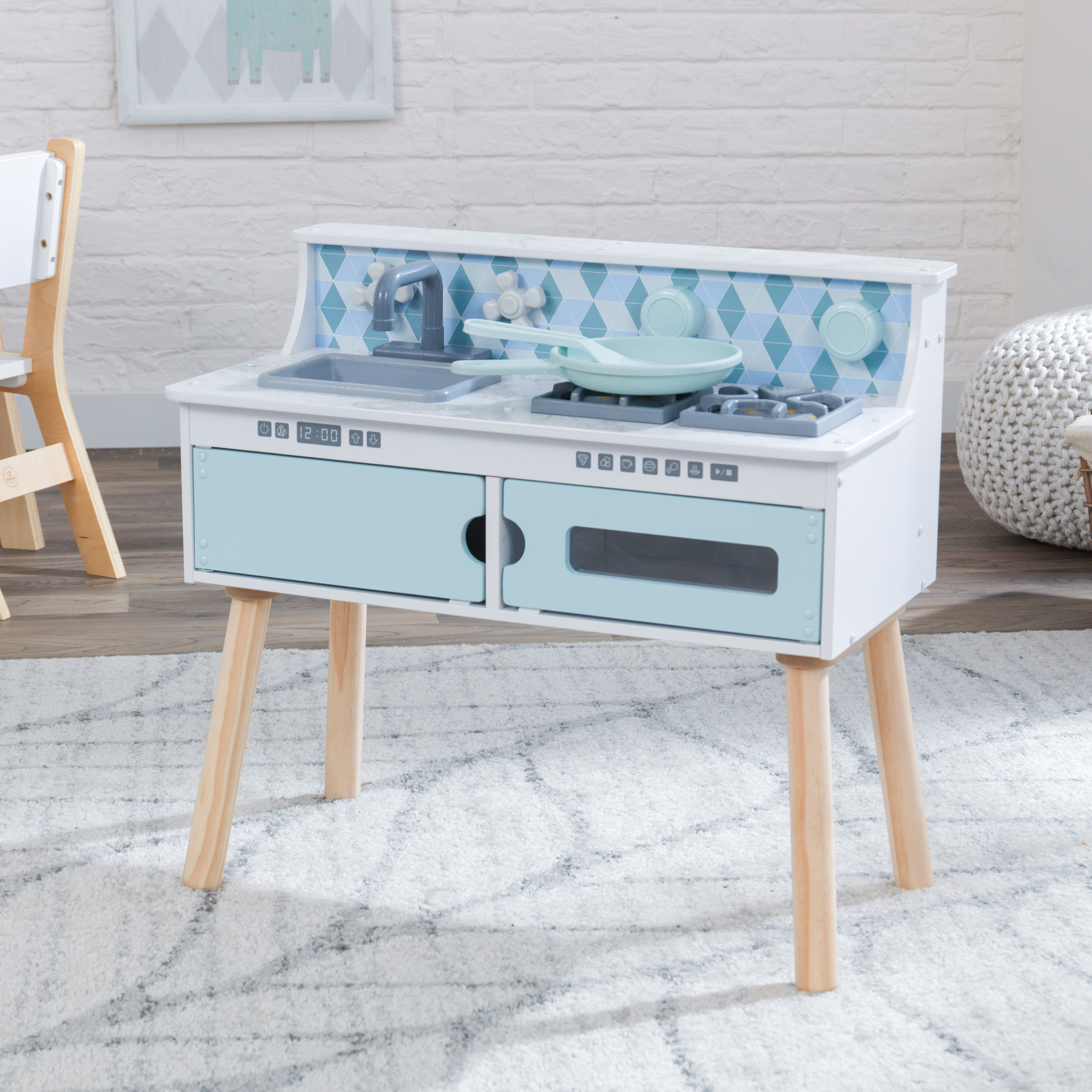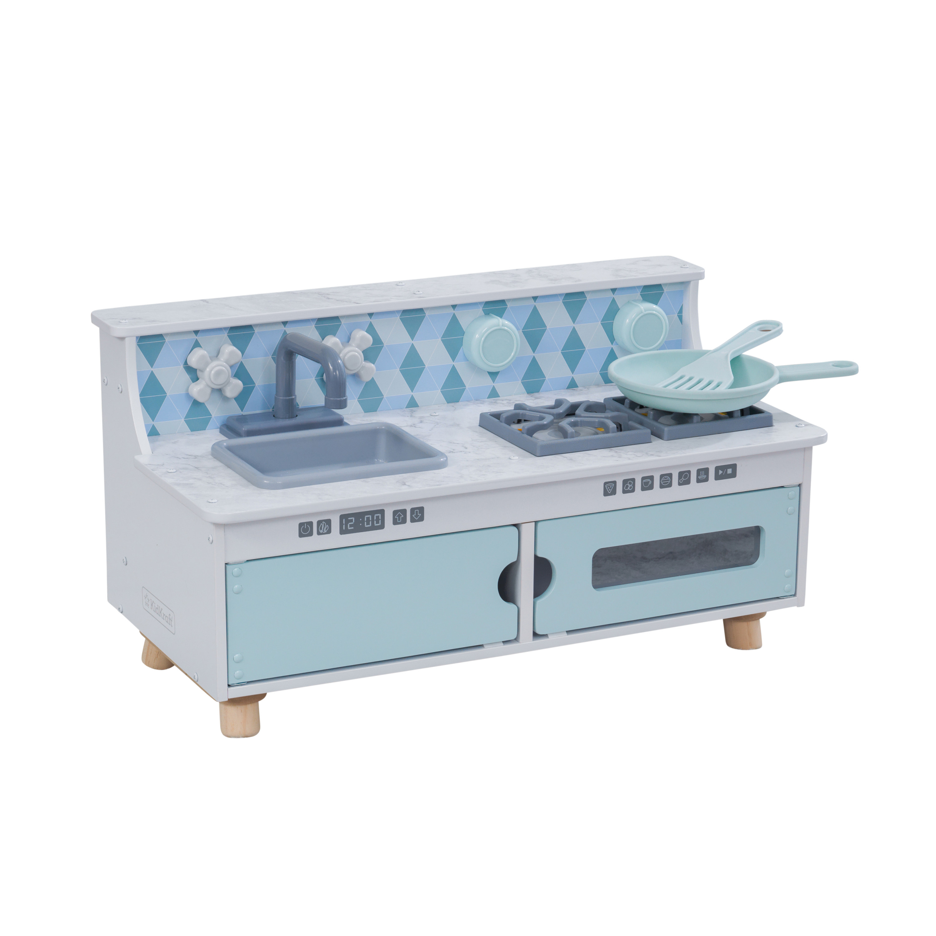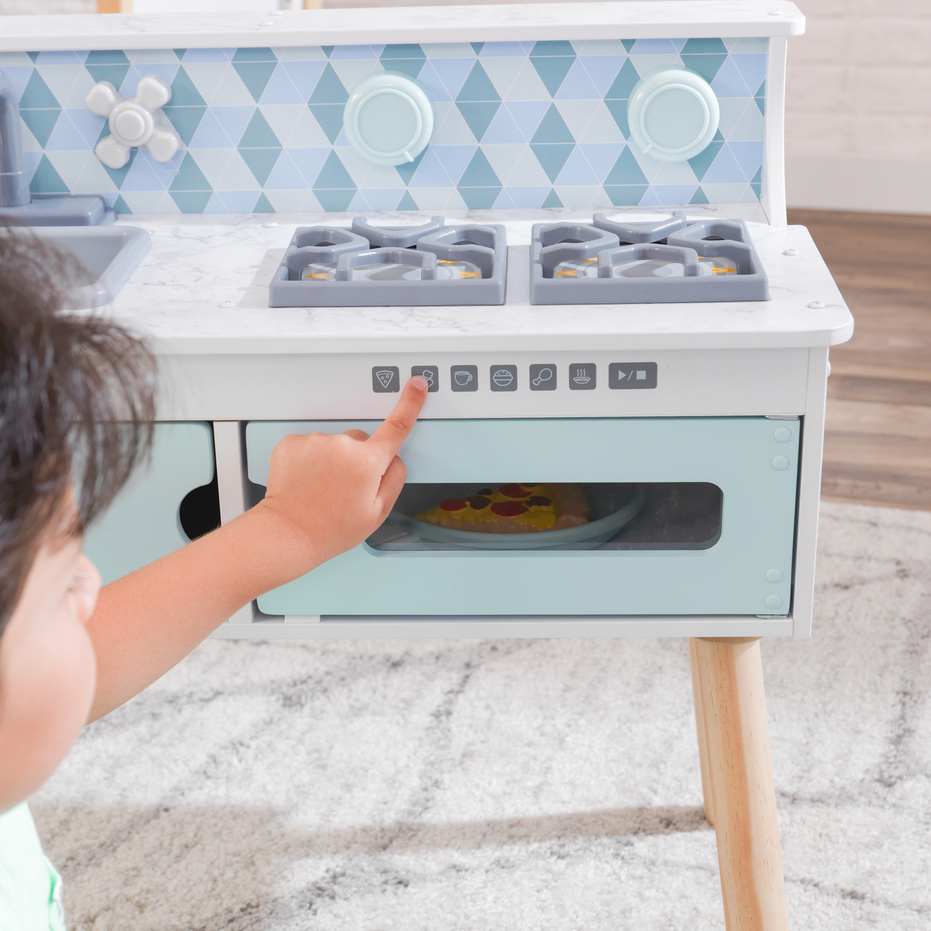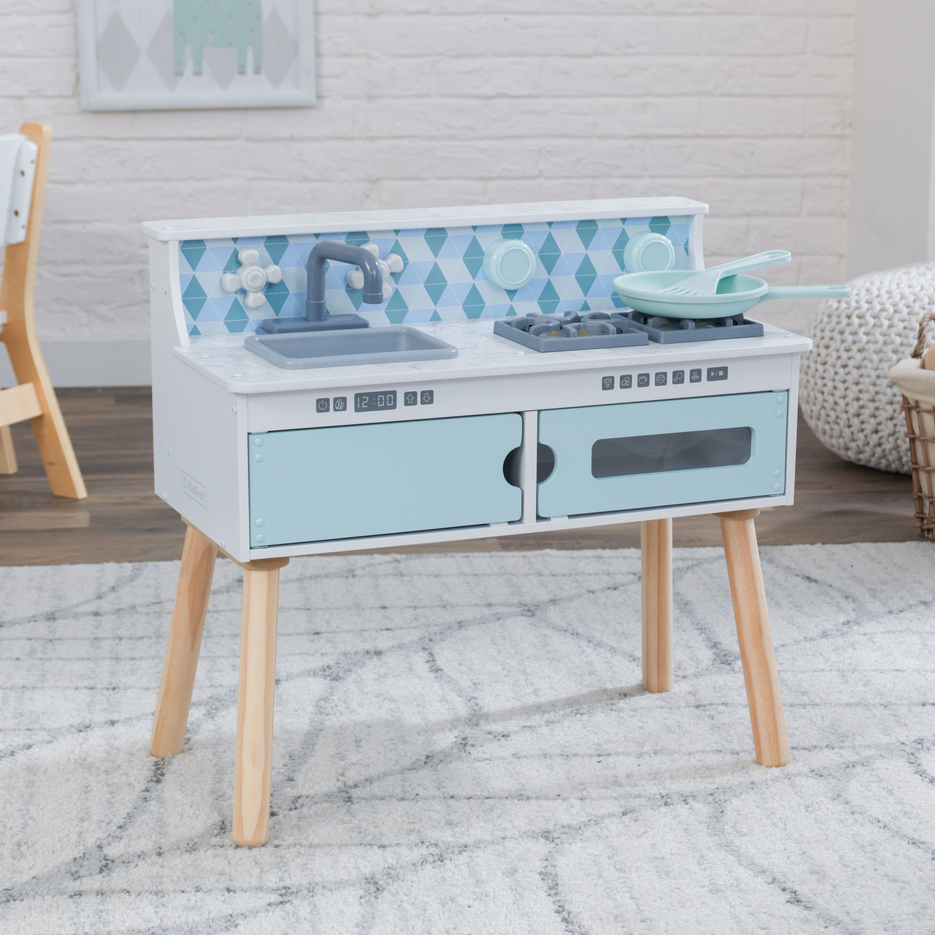 Dětská kuchyňka Play & Put Away z přírodního materiálu pro všechny malé kuchtíky od výrobce Kidkraft. Kuchyň obsahuje varné plotýnky se dvěma ovládacími knoflíky, které při otáčení cvakají. Obě dvířka herní soustavy jsou otevíratelná. Nožky kuchyňky je možné oddělat a herní sestavu tak snížit.