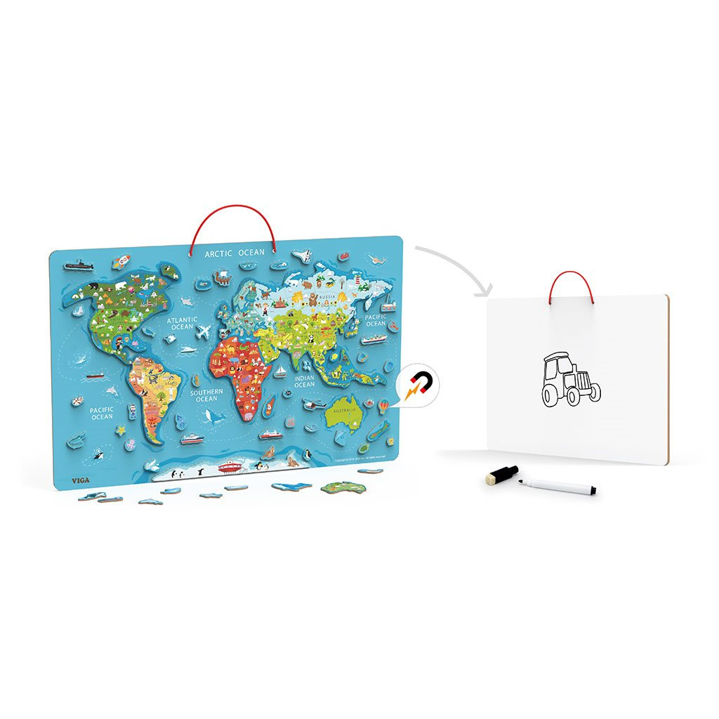 Magnetická Mapa světa od společnosti Viga, která je zároveň kreslicí tabulí, je ideální hračkou pro malé objevitele, kteří se zajímají o svět!