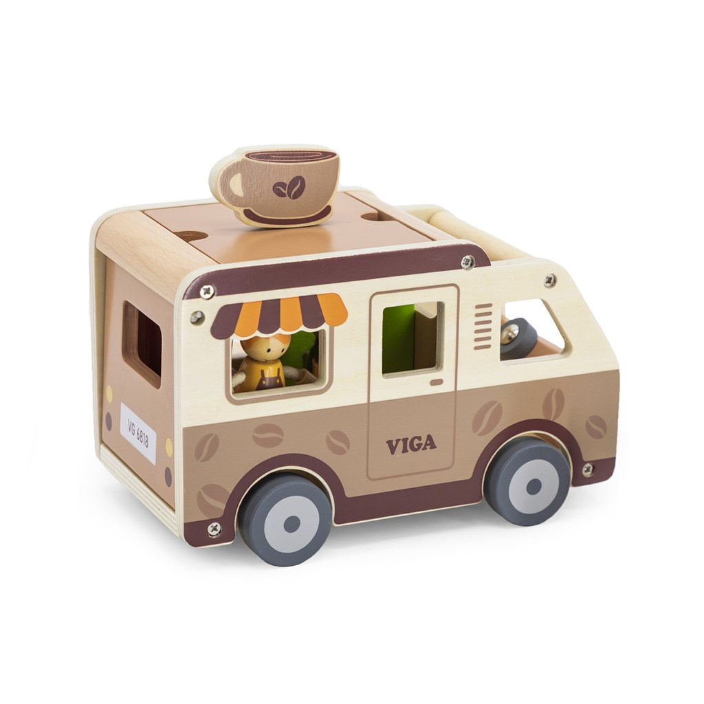 Pevná dřevěná konstrukce a jemné pastelové barvy nanesené netoxickými barvami činí hračku nejen esteticky příjemnou, ale i bezpečnou pro nejmenší. Sada je navržena s ohledem na rozvoj představivosti, manuálních dovedností a sociálních schopností dětí a nabízí mnoho hodin kreativní zábavy. Perfektní pro děti, které milují dobrodružství a sní o vlastní mobilní kavárně na kolech.