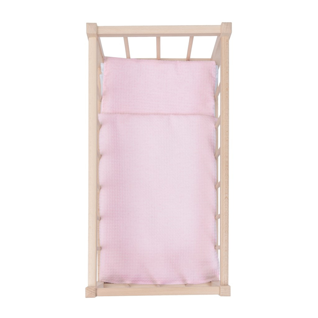 Dřevěná postýlka-kolébka pro panenky s povlečením Baby Mix