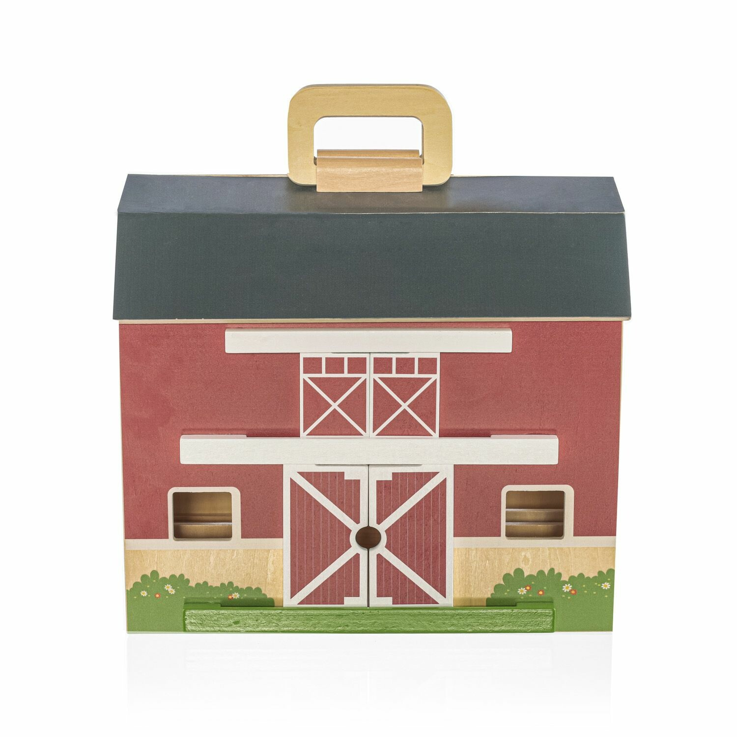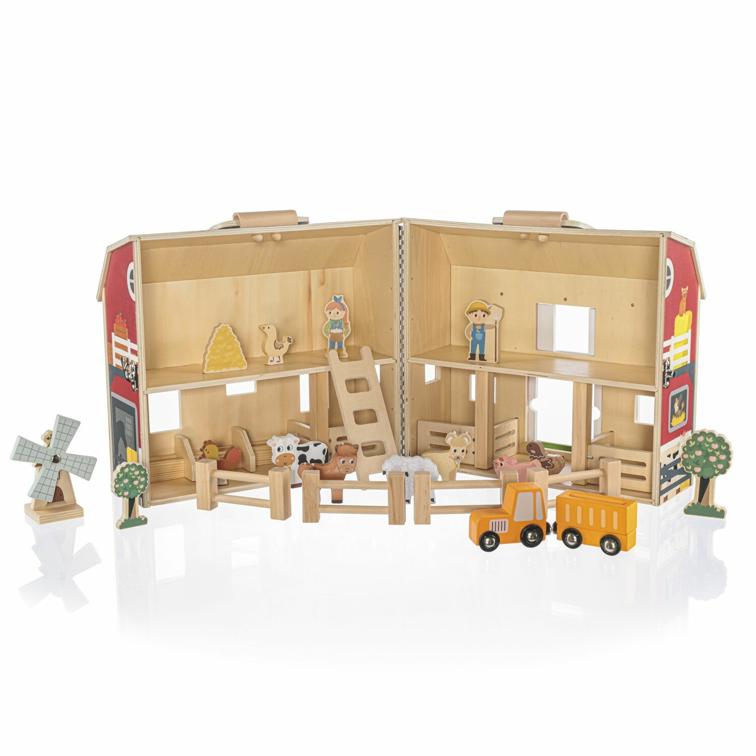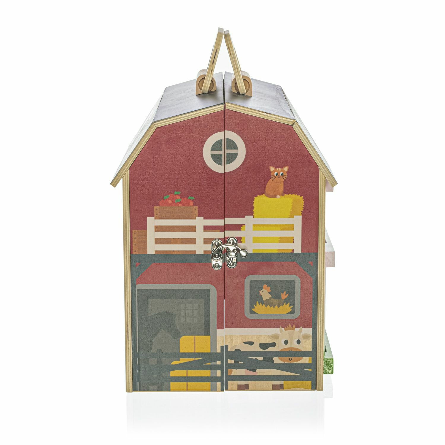 Skládá se z dřevěné stodoly s dveřmi, která je dodávána s realistickými dřevěnými figurkami hospodářských zvířátek.