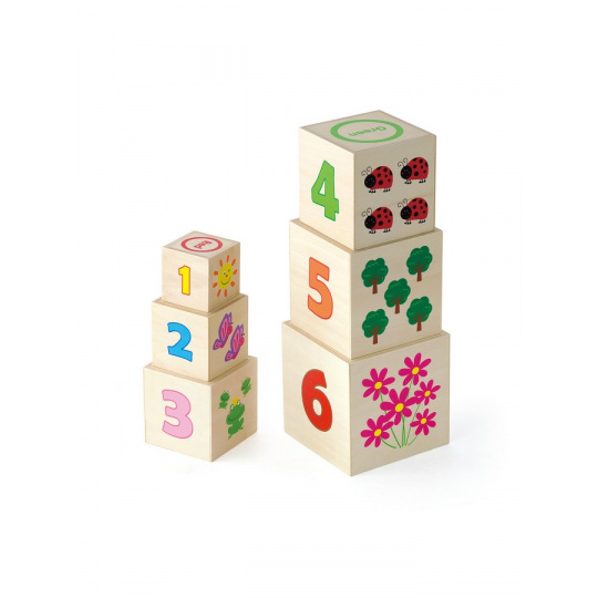 Vzdělávací pyramida Viga City. Sada obsahuje 6 kusů barevných dřevěných kostek v různých velikostech, které jsou z jedné strany otevřené a proto pěkně zapadají do sebe. Tato fantastická hračka funguje jako didaktická pomůcka. Kostky jsou zdobené krásnými obrázky zvířátek, geometrických tvarů, čísel, barev a přírody. Hračka je vyrobena z lakovaného dřeva. Naší prioritou je bezpečnost a kvalita našich výrobků, a proto barvy použité na hračkách nejsou toxické a splňují bezpečnostní standardy (EN71 a ASTM). Pro děti od 12 měsíců.