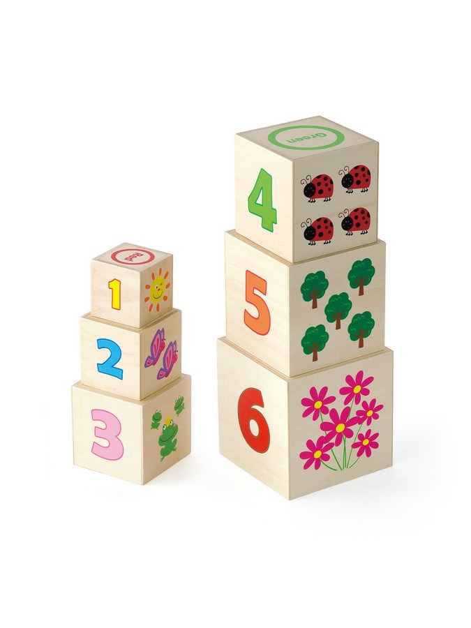 Vzdělávací pyramida Viga City. Sada obsahuje 6 kusů barevných dřevěných kostek v různých velikostech, které jsou z jedné strany otevřené a proto pěkně zapadají do sebe. Tato fantastická hračka funguje jako didaktická pomůcka. Kostky jsou zdobené krásnými obrázky zvířátek, geometrických tvarů, čísel, barev a přírody. Hračka je vyrobena z lakovaného dřeva. Naší prioritou je bezpečnost a kvalita našich výrobků, a proto barvy použité na hračkách nejsou toxické a splňují bezpečnostní standardy (EN71 a ASTM). Pro děti od 12 měsíců.