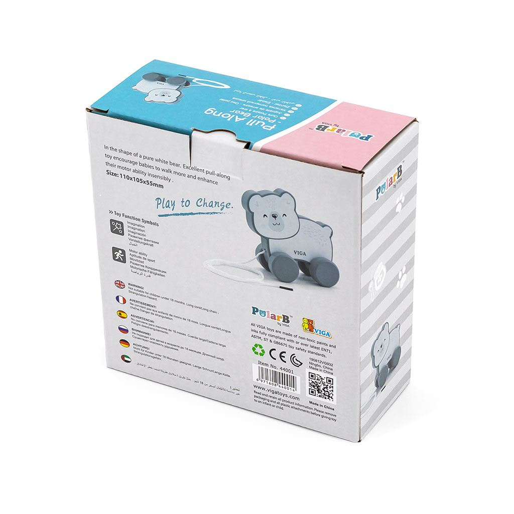 Nabízíme nádhernou řadu tahacích hraček POLAR BEAR značky VIGA. Tato hračka je skvělá pro děti, které začínají chodit. Pastelové barvy a hravé tvary podněcují dítě k zdokonalování svých motorických schopností. Celá řada hraček POLAR BEAR byla vytvořena firmou VIGA, aby splnila očekávání rodičů a dětí v oblasti zlepšování procesu jejich vývoje prostřednictvím hry v oblasti koncentrace, hrubé motoriky a senzoriky. Hračka je balena v barevném balení s okénkem. Díky estetickému balení je hračka ideální jako dárek! Celá hračka je vyrobena z bukového dřeva natřeného ekologickými a nezávadnými barvami v barvách, které upoutají pozornost a podněcují k hře a zároveň přinášejí spoustu radosti z hry.