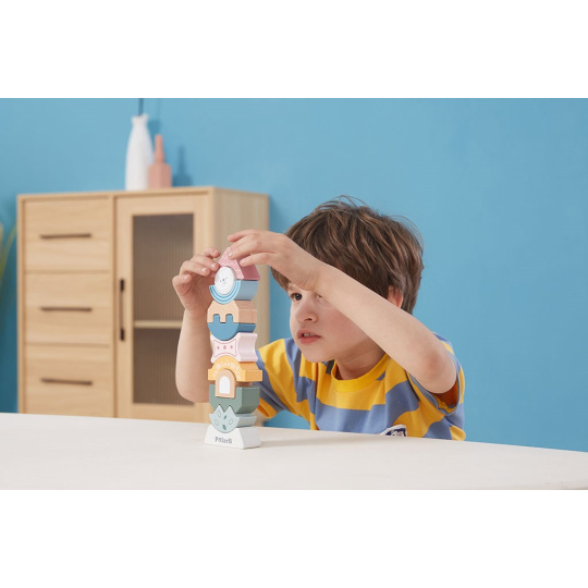 Celá hračka je vyrobena z bukového dřeva s měkkými hranami a natřena neškodnými barvami v tlumených barvách, které upoutají pozornost a podpoří hru a zároveň poskytnou spoustu zábavy.