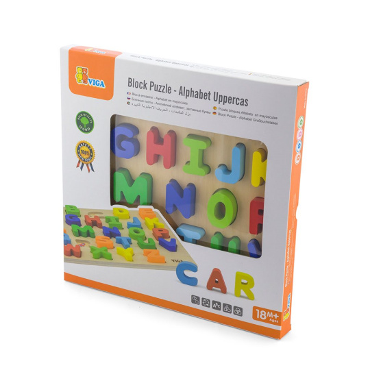 Vkládanka Abeceda na podložce od společnosti Viga je ideálním dárkem, který potěší každé dítě. Tato funkční hračka díky výrazným barvám, trojrozměrným tvarům a obrázkům zabaví vaše děťátko na dlouhé hodiny. Děti musí správně přiřadit dřevěná písmena abecedy k otvorům v podložce. Na každém otvoru je obrázek, který podněcuje dětskou zvědavost a usnadňuje přiřazování písmen. Malé děti si tak formou hry procvičují manuální zručnost a zároveň se učí písmenka.