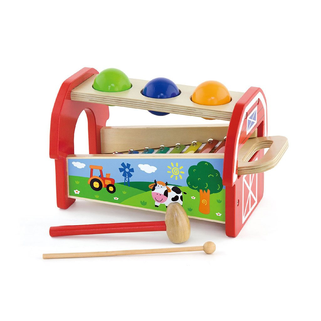 Zatloukačka s xylofonem od společnosti Viga je jednou z nejkrásnějších hraček, díky které dítě rozvíjí manuální dovednosti, představivost a logické myšlení. Hračka má dvě funkce, které dětem zajistí dvojnásobnou zábavu. Úkolem dítěte je prostrčit barevné kuličky otvory v horní části hračky. Když kuličky spadnou dovnitř, rozezní se jemná melodie.