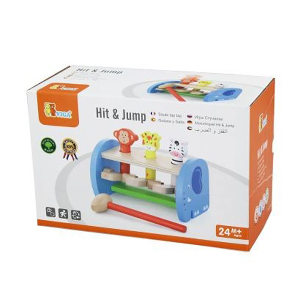 Barevná, dřevěná zatloukačka Viga, kterou si zamiluje každé malé dítě. Úkolem dítěte je "katapultovat" zvířátka dřevěným kladívkem. Hračka určená pro děti od 2 let. Naší prioritou je bezpečnost a kvalita našich výrobků, a proto barvy použité na hračkách nejsou toxické a splňují bezpečnostní standardy (EN71 a ASTM). Pro děti od 2 let. Hračka je vhodná jako krásný dárek, který si vaše děti zamilují.