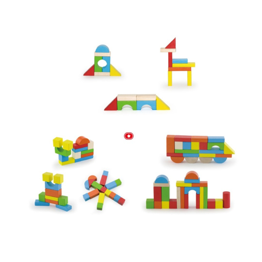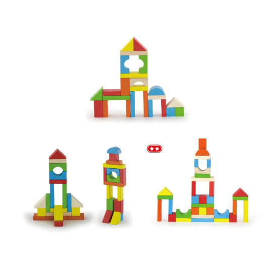 Krásné, barebné, dřevěné kostky v kyblíku Viga. Přináší 80 krásně barevných dílů i pro ty nejmenší stavitele. Stavebnice vydrží dlouhou dobu a dává vašemu dítěti mnoho let zajímavé a tvůrčí hry. Kostky mají různé tvary, velikosti, krásné barvy. Najdete zde tvary jako krychle, kvádr, trojuhleník, válec, obdélník, most, ad. Tento kyblík s kostkami tak slouží jako motorická pomůcka, která děti učí poznávat tvary a zacházet s kostkami. Hračka pomáhá zlepšit manuální zručnost a obratnost, učí dítě rozpoznat tvary a barvy, zapojuje a rozvíjí smysl pro pozorování. Hračka je vyrobena z lakovaného dřeva. Naší prioritou je bezpečnost a kvalita našich výrobků, a proto barvy použité na hračkách nejsou toxické a splňují bezpečnostní standardy (EN71 a ASTM). Pro děti od 2 let. Hračka je vhodná jako krásný dárek pro naše nejmenší.