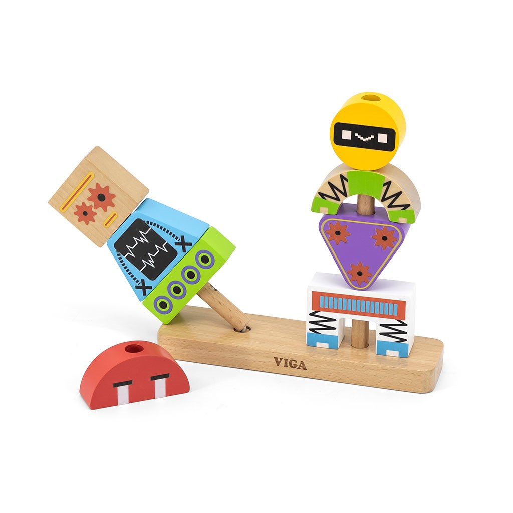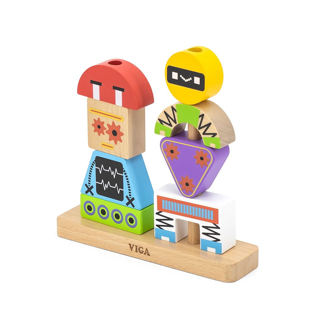 Skládačky - Roboti od společnosti Viga jsou ideálním dárkem pro dítě, který podpoří jeho rozvoj a usnadní vzdělávání. Dítě na základě přiložených kartiček - předloh rozdělených podle obtížnosti, musí uspořádat roboty do různých konfigurací. První úroveň obtížnosti se skládá ze 6 kartiček, druhá úroveň obtížnosti se skládá také ze 6 kartiček s náročnějším uspořádáním kostek a třetí úroveň obtížnosti se skládá z 10 kartiček, na kterých jsou vyznačeny pouze obrysy kostek. Batolata mají možnost tvořit podle své fantazie a uspořádat si z dostupných prvků vlastní vzhled robotů.