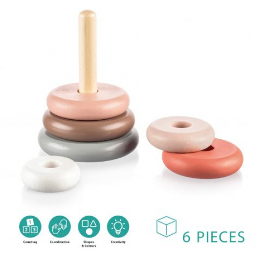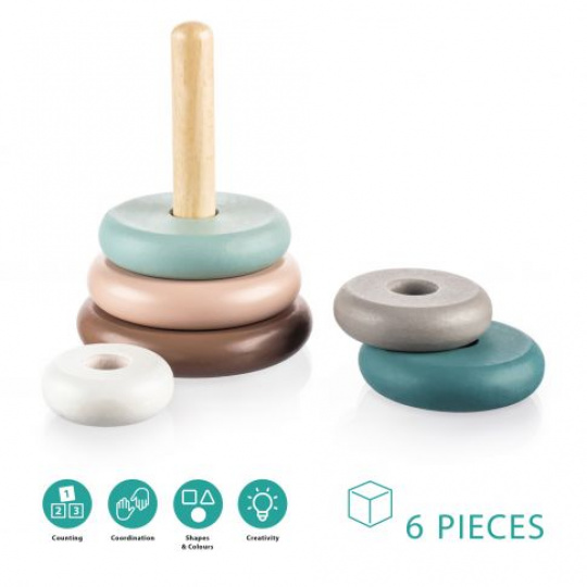 Skládání, rozkládání, třízení a desítky různých kombinací – to jsou dřevěné nasazovací kroužky pro zvídavé objevitele. Sada je složená ze 6 různě velikých kousků, které se mohou libovolně skládat na sebe.