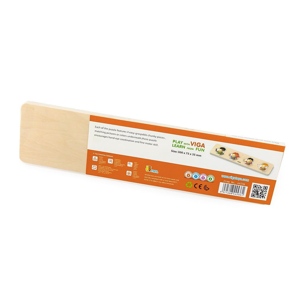 Krásné, barevné dětské dřevěné puzzle s úchyty Viga. Dětem se díky úchytům puzzle lépe drží v prstech a snáze se vkládájí do určených míst. Také pomáhá zlepšit manuální zručnost i obratnost a zároveň učí dítě rozpoznat tvary a barvy. Přispívá k rozvoji motoriky, zlepšuje koordinaci a pozorovací schopnosti dítěte. Balení obsahuje 4 dílky. Určeno pro děti od 12 měsíců. První puzzle pro Vaše malé děti, má velmi výrazné barvy, jednoduchý design a velké dílky. Naší prioritou je bezpečnost a kvalita našich výrobků, a proto barvy použité na hračkách nejsou toxické a splňují bezpečnostní standardy (EN71 a ASTM). Hračka je vhodná i jako krásný dárek pro naše nejmenší. Rozměr: 32x3x7,5 cm